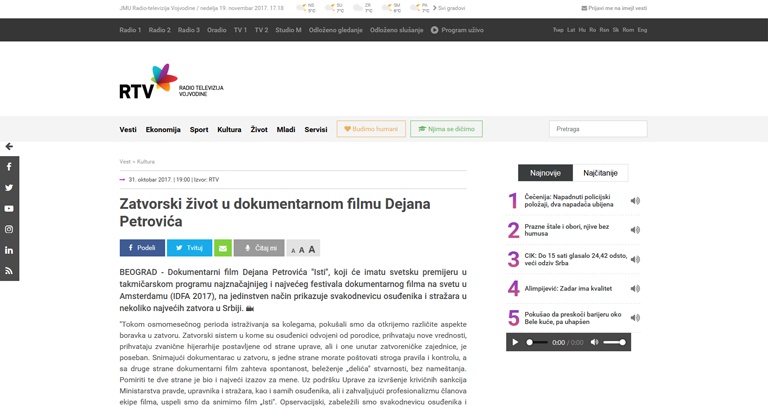 RTV, emisija "Kratki rezovi", 28.10.2017.